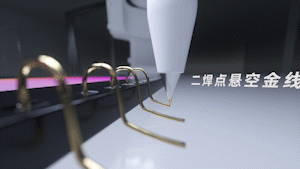 那还有没有其他的解决方案呢?格科技术团队想出来一个方法,直接把金线悬空来做引脚。微观世界很神奇,当金线很短时,变得坚硬而有弹性,可以直接用来做引脚。